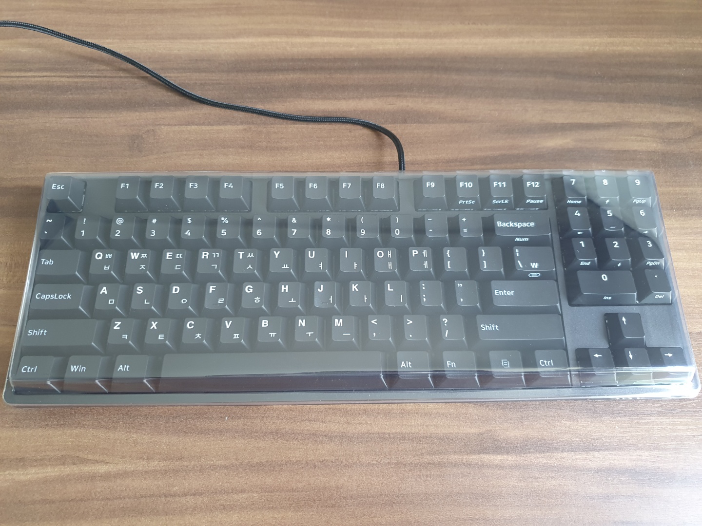 그런데 키보드 커버가 포함되어 있습니다. 그리고 꽤나 튼튼한 게, 질이 좋습니다. 그리고 키보드의 USB 연결 부분에도 플라스틱 커버가 같이 있습니다. 이 제품은 출시 당시 약 8만원이었다고 하는데, 그래서 그런지 고급 제품 느낌을 주려고 한 것 같습니다. 소비자 입장에서야, 어쨌든 끼워주면 정말 좋은 물건이죠. 지금은 다나와 최저가 59900원 입니다.