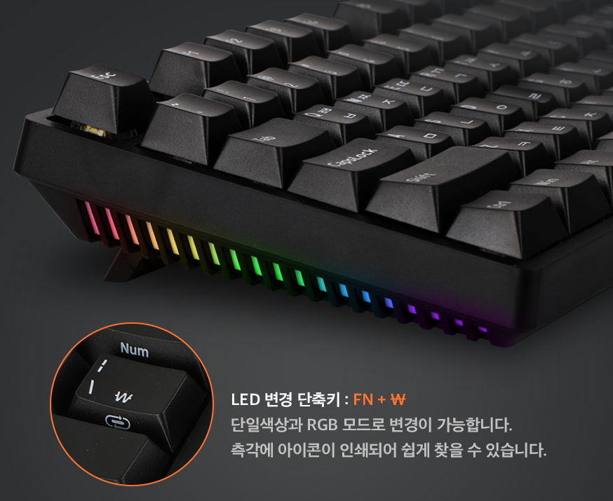 그리고 대신인지 뭔지 이 키보드에는 사이드 RGB 이펙트가 달려 있습니다.