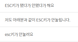 그리고 또 하나 특이한 점은, 이 키보드에는 ESC 이슈가 있었습니다. 공식 홈페이지에만 가도, 상품문의에 ESC 관련 질문을 꽤 확인할 수 있습니다.